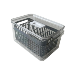 Contenedor de PET transparente con asa Refrigerador Caja de almacenamiento de plástico Cesta de colador extraíble para uso en la cocina para almacenamiento de alimentos
