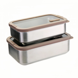 Contenedor de alimentos de acero inoxidable 304, fiambrera ecológica para microondas con tapa de vidrio sin BPA, 700ml, 1000ml, 1650ml, opciones de tamaños