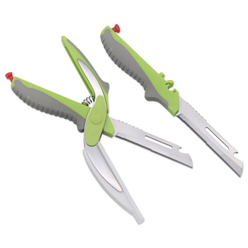 Tijeras de cocina multifunción, cortador de verduras y frutas, abrelatas y tabla de cortar integrada